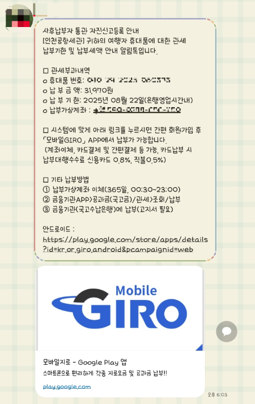 세관에서 세금이 확정되면, 현장에서 즉시 납부하거나 기한 내 납부할 수 있는 계좌 정보를 안내받습니다. 저는 약 10일의 납부 기한이 주어졌고, 계좌이체를 통해 간편하게 납부했습니다. 기한 내 미납 시 앞서 언급한 가산세가 붙을 수 있으니 반드시 기한을 지켜야 합니다.